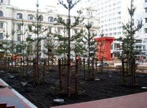 2003年ダウンタウンに開業したブリトマート駅(Britomart Railway Station)によって、縮小したQE2スクエアには、18本のカウリの木が植樹されました。