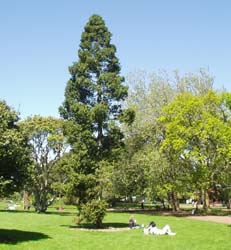 プリンセス・ストリート(Princes Street)を挟んで、アルバートパークの向かいあるオークランド大学敷地内にも、数本のリッカーズ(カウリの若木)が見られます。