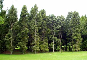 ワン・トゥリー・ヒルの東側、ツイン・オーク・ドライブ(Twin Oak Drive)の並木として立派なカウリの木がまとまって並んでいます。
