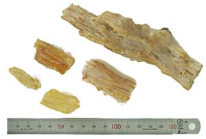 カウリは樹脂(ガム)が豊富ですから、大きな木を見上げると、ツララ状に垂れ下がったガムを見つけることができます。ツララ状に成長したガムはやがて固まって、風雨が激しいときなどに折れて地面に落ちます。