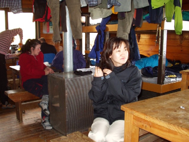 夜はストーブも止められ、山小屋の中でも氷点下1度!