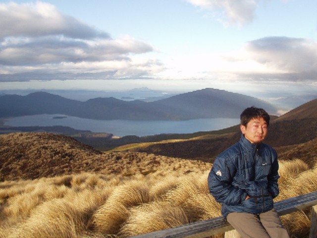 タソックの草原の下に湖が遠望できます。夕方ですが、時折雪が舞いました。