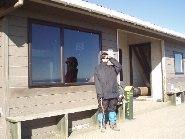 この日は強風のため、体感気温は氷点下。完全武装で山頂に臨みます。