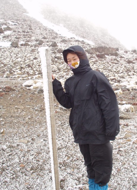 これ以降は雲の中に入り、強風と寒さのため、完全に冬山となりました。
